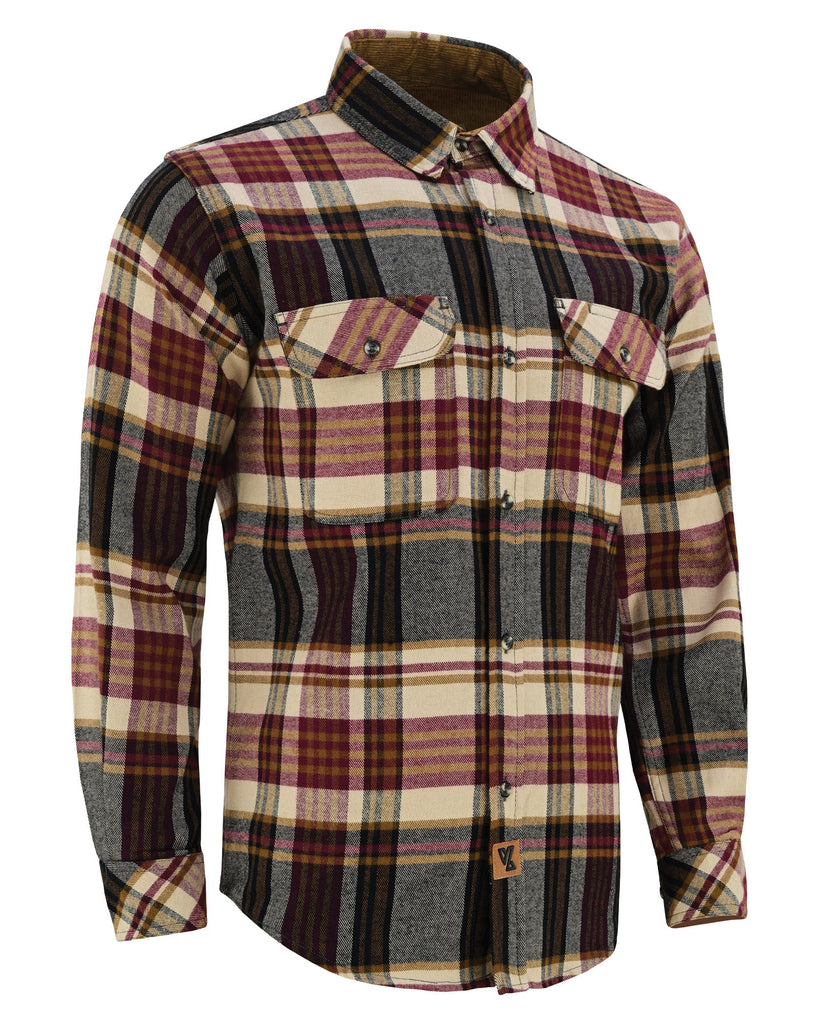 With its rich maroon, beige, and charcoal plaid pattern, the Cedarwood Plaid delivers a classic yet refined look. Designed for comfort and performance, this long-sleeve button-down is the perfect go-to for casual wear, riding, or outdoor activities. This flannel pays homage to the hardworking lifestyle of tradesmen, bikers, and adventurers, offering both warmth and breathability. Whether layered over a tee or worn on its own, this versatile shirt is built to last.
