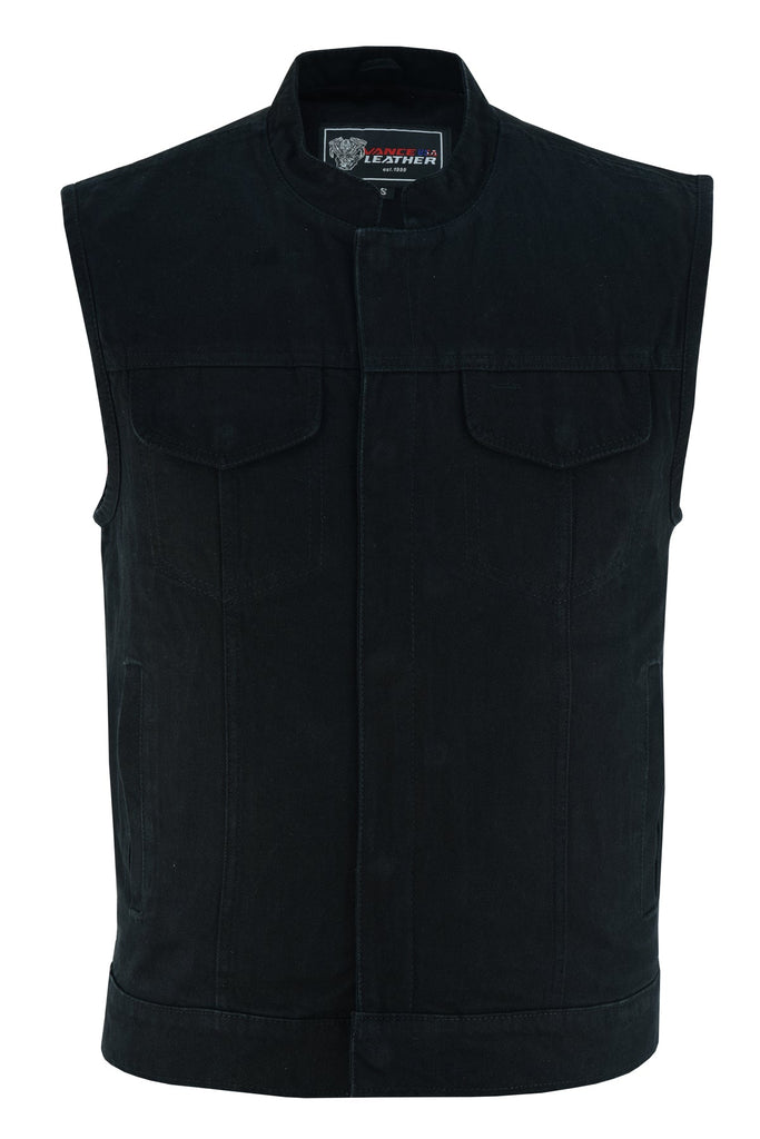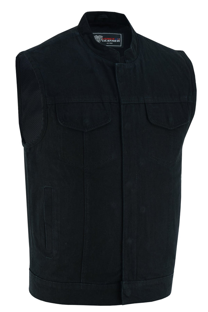 Mens SOA Style Snaps and Zipper Black Denim Club Vest .