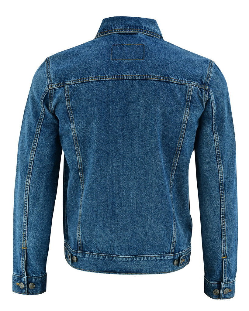 Crafted from blue heavy-duty denim, this jacket combines durability and style, making it a timeless addition to your riding gear. The rich blue hue gives it a unique aesthetic appeal, while the robust denim fabric stands up to the elements and the demands of the road.