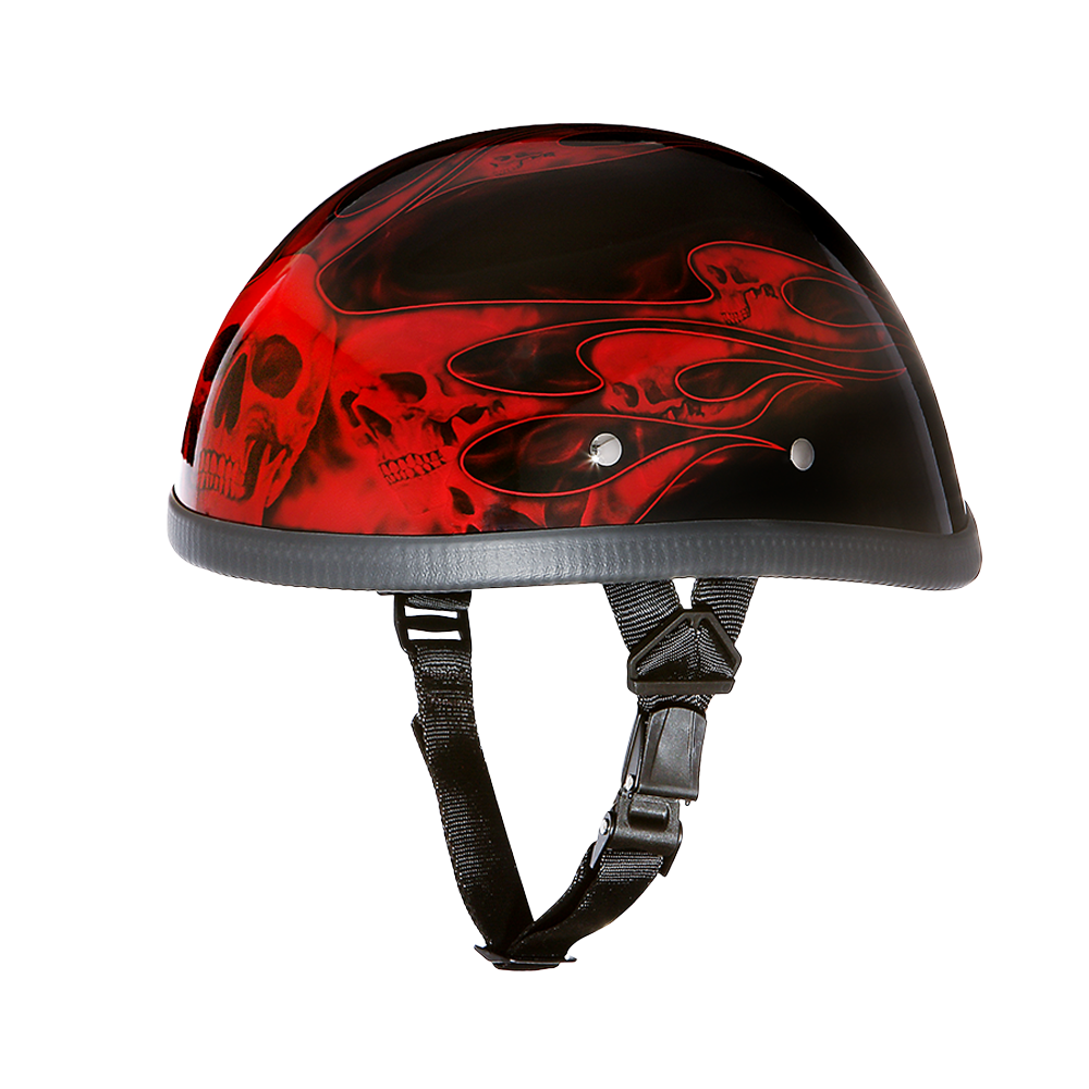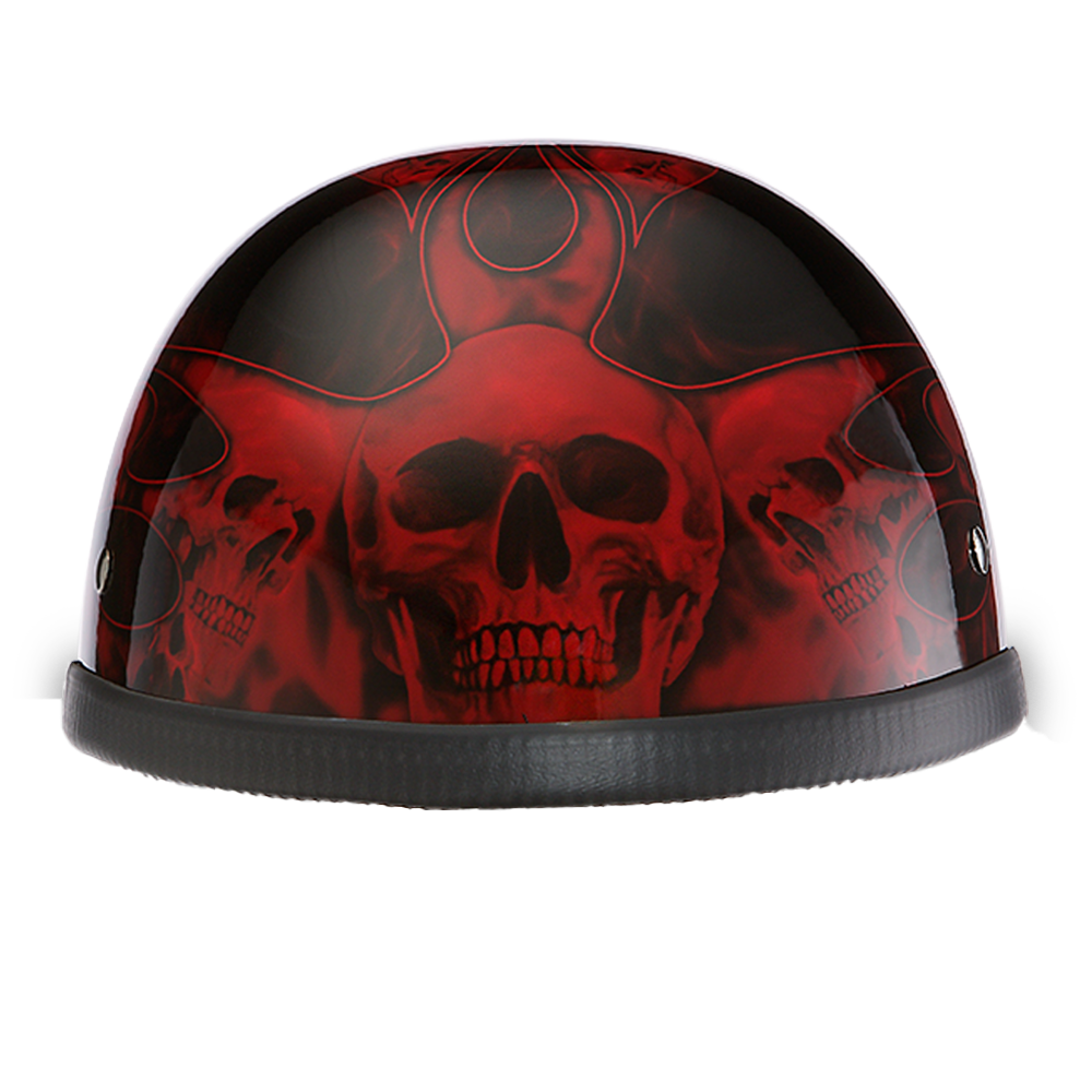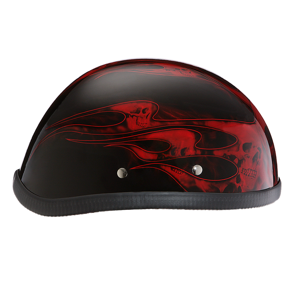 Our Premium Classic Eagle Novelty Item With Skull Flames Red Graphic Does Not Meet D.O.T. Standards. The Eagle Novelty Item With Red Flames Graphic Is Fully Lined With A Custom Formed Interior, For X-treme Comfort. Each Graphic Item Is Custom Designed And May Vary In Color Or Composition. This Eagle Graphic Novelty Item Has A Clear Lacquer Finish, Available Without Snaps/Visor Only. Free Head Wrap And Cloth Draw String Bag Included.