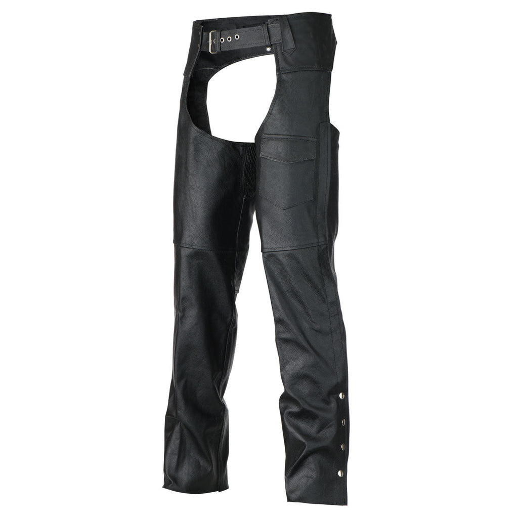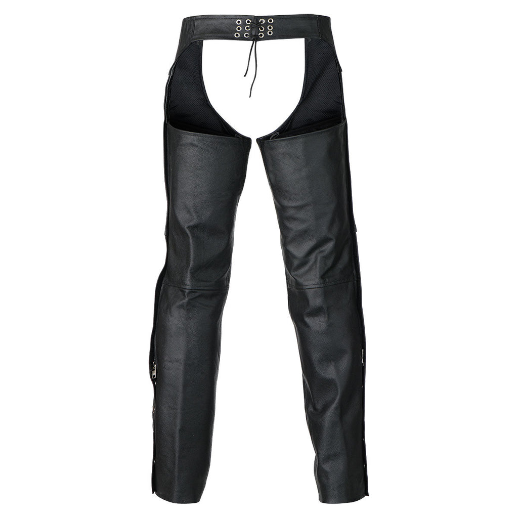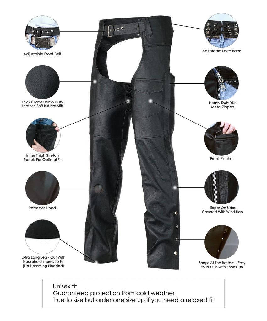 Vance Leather Unisex Classic Black Leather Biker Motorcycle Riding Chaps.