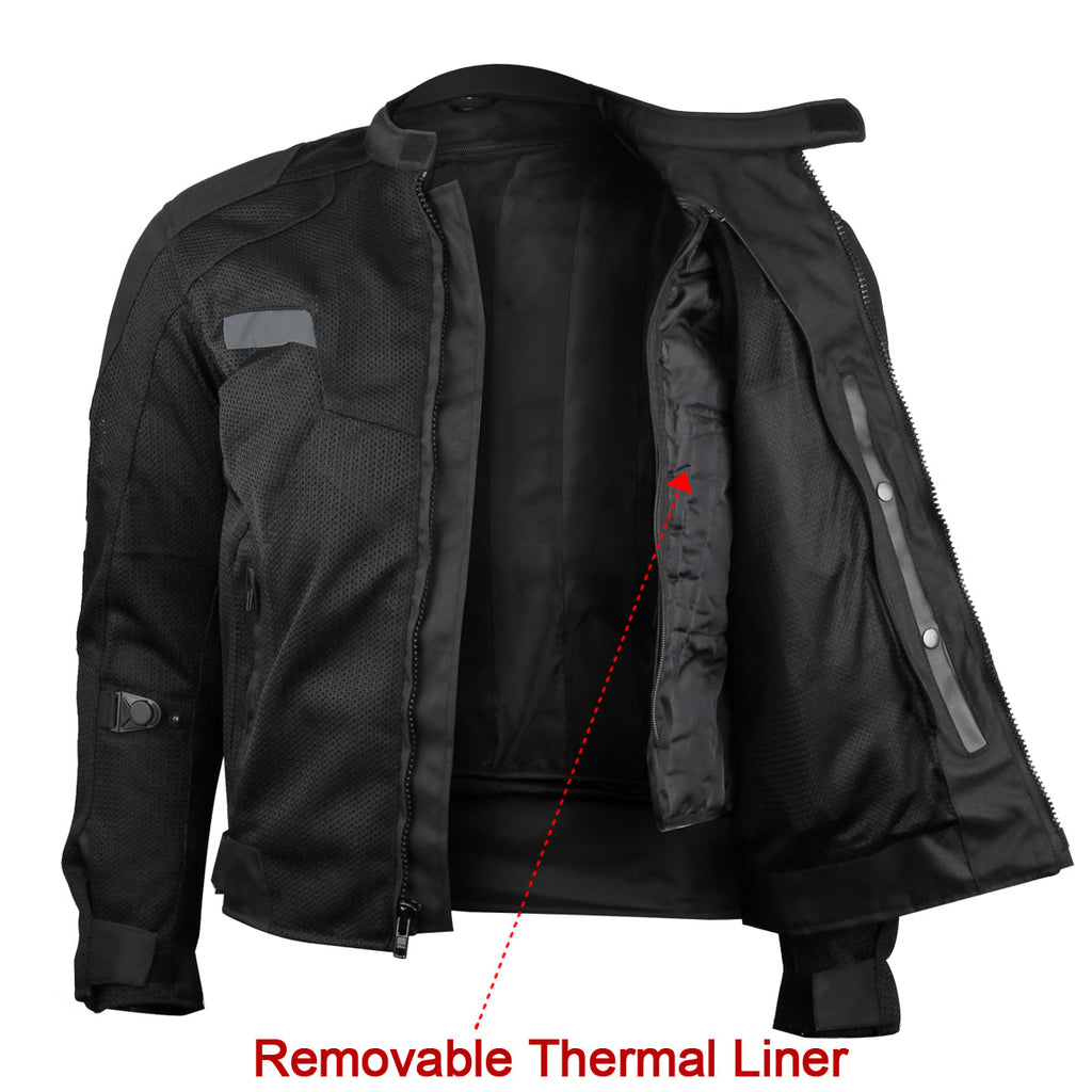Advance Vance Mens All Weather Season CE Armor Black Mesh Motorcycle Jacket.