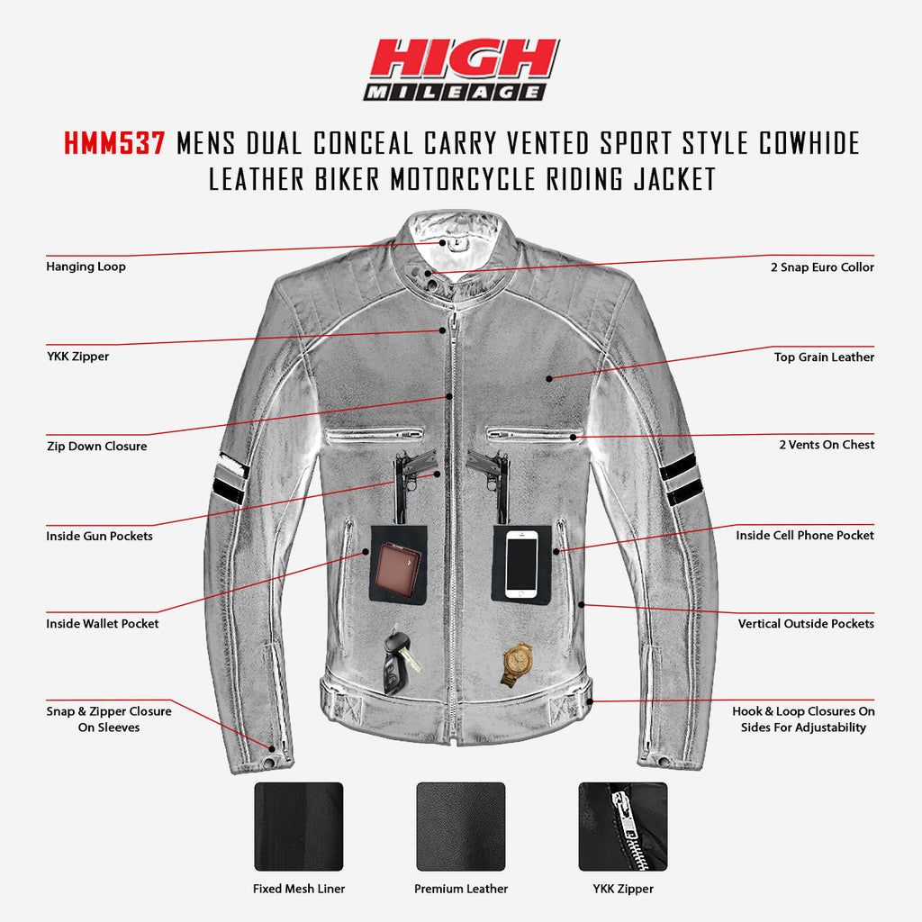 High Mileage Mens Premium Cowhide Leather 'Street' Cruiser Motorcycle Riding Jacket