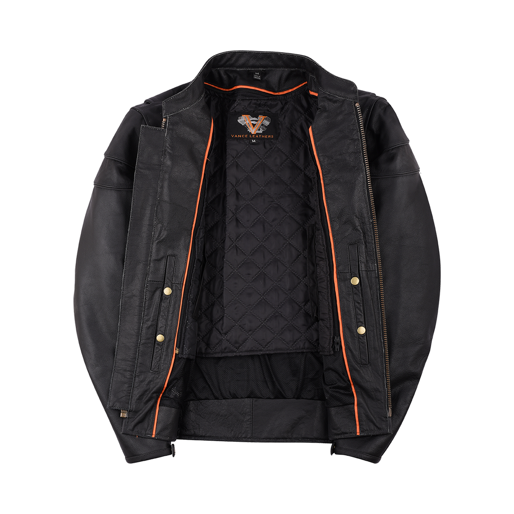 • 100% COWHIDE LEATHER: to provide the best quality of leather to our community. With elaborate design, exquisite workmanship and high quality cowhide leather, Vance Leathers USA provides more functional and fashionable jackets for men.