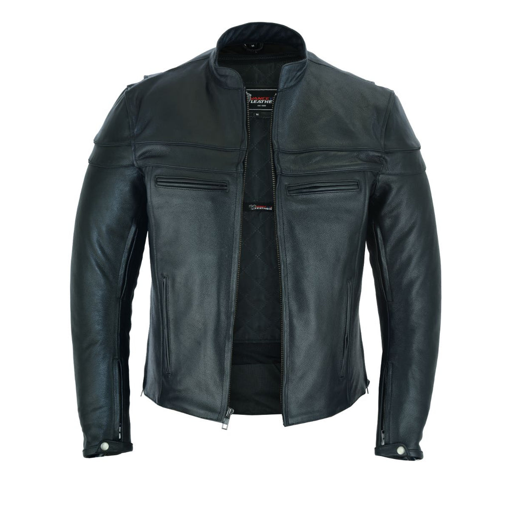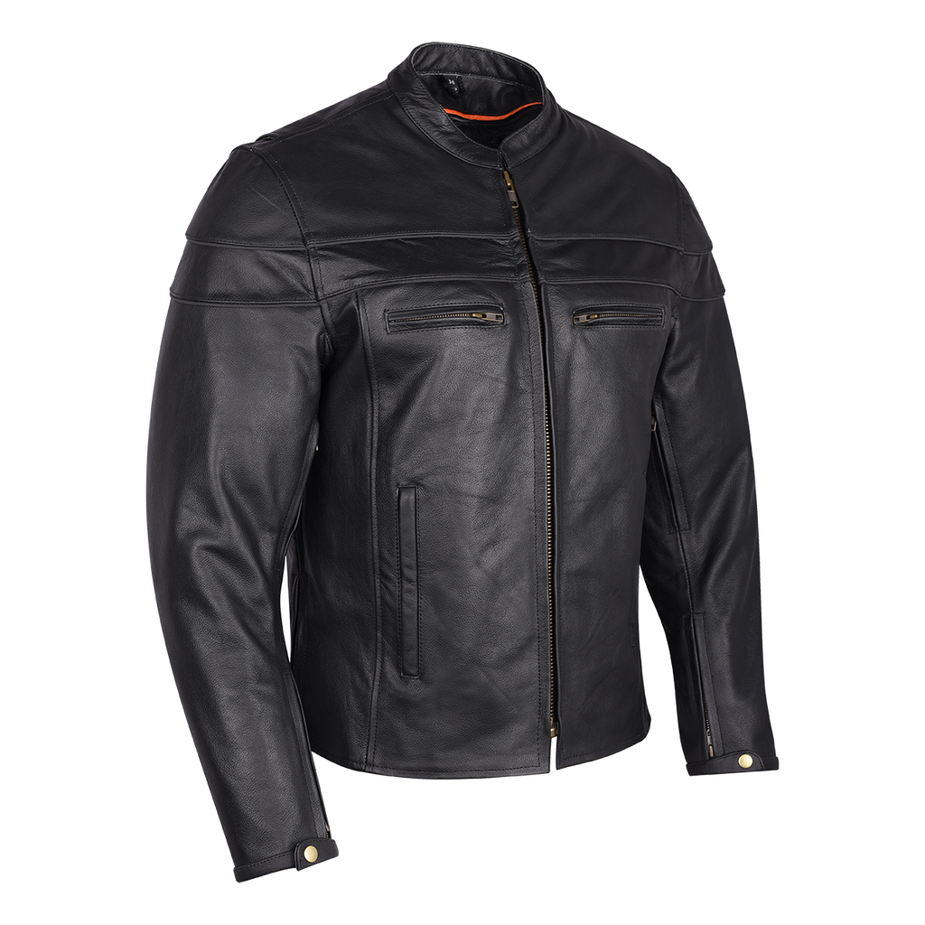 Mens Premium Cowhide Cafe Racer Leather Motorcycle Jacket Features: