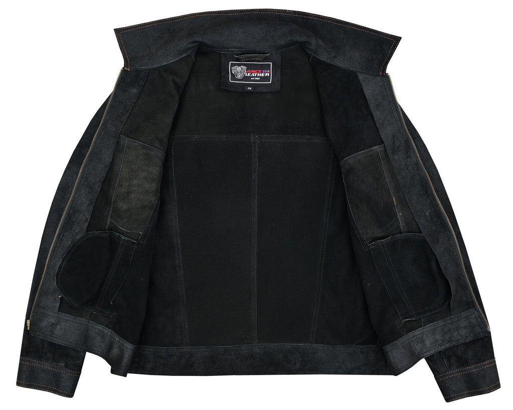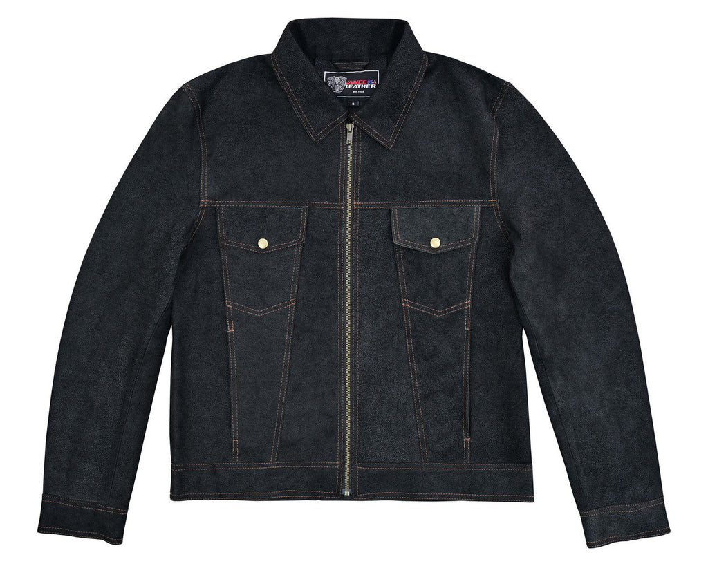 Combining rugged functionality with refined craftsmanship, the Men's Black Goat Suede Trucker Motorcycle Leather Jacket is crafted from premium goat suede leather for an ultra-soft texture and durable performance. Perfect for motorcycle enthusiasts and casual riders alike, this jacket balances timeless style with modern practicality.