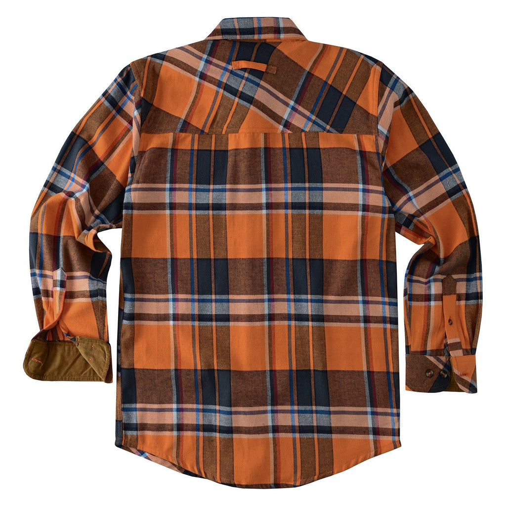 Eye-catching orange plaid design that adds bold energy to classic flannel style.