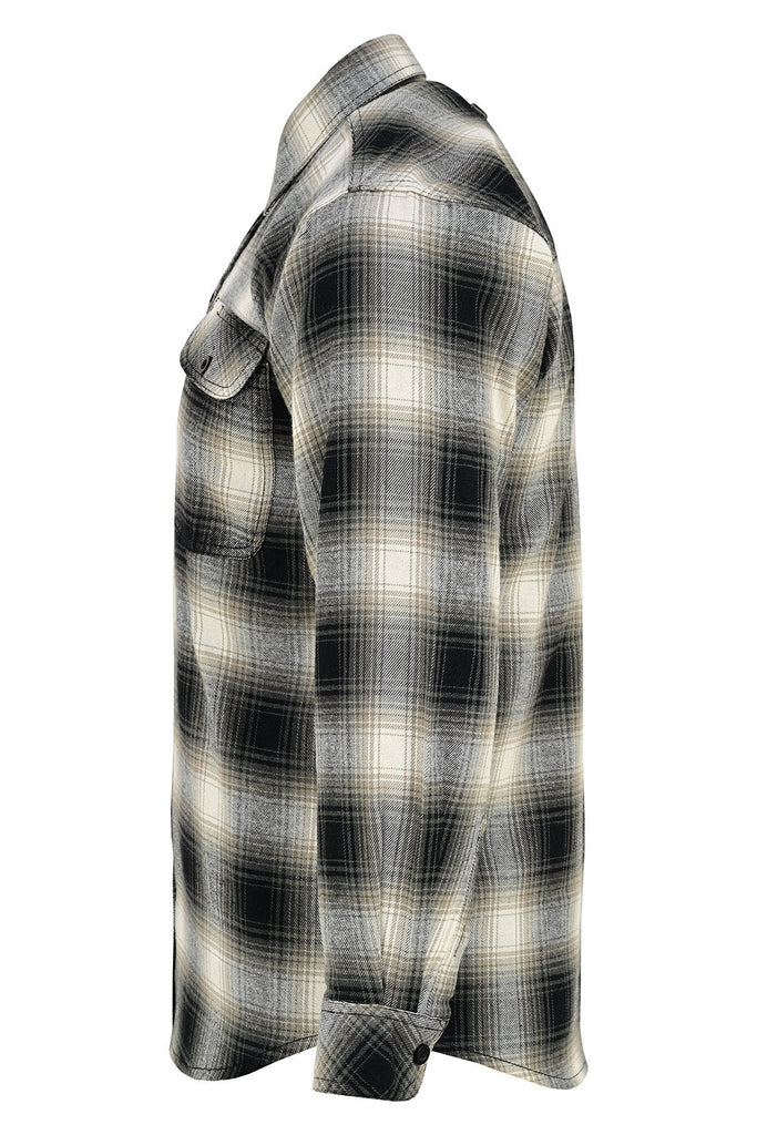 Embrace the cool confidence of a winter landscape with the Timberwolf Men’s Flannel Shirt. Built for riders, craftsmen, and weekend wanderers, Timberwolf features a dramatic charcoal‑to‑ivory ombré plaid in a mid‑weight, 100% brushed cotton that’s soft, breathable, and made to last. Whether you’re carving turns at first light or gathering around the campfire at dusk, this flannel delivers the perfect blend of rugged performance, timeless style, and cozy warmth.