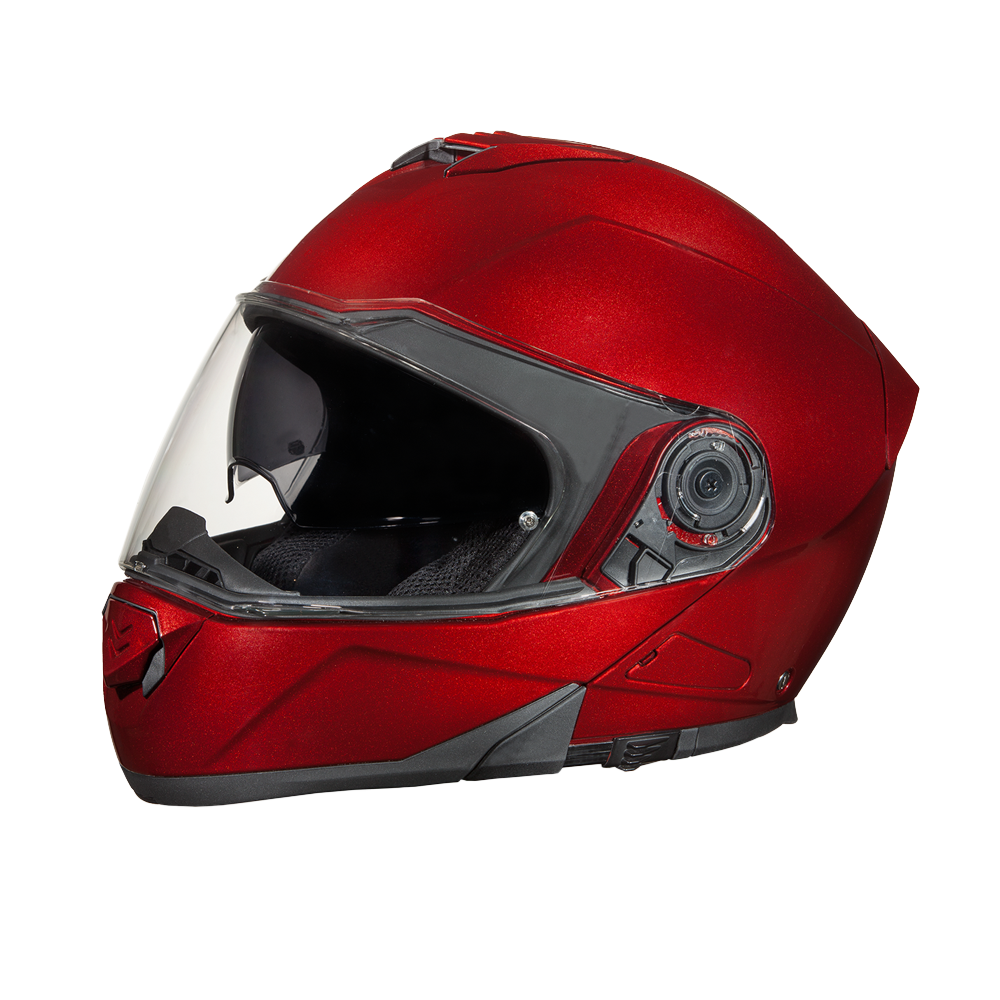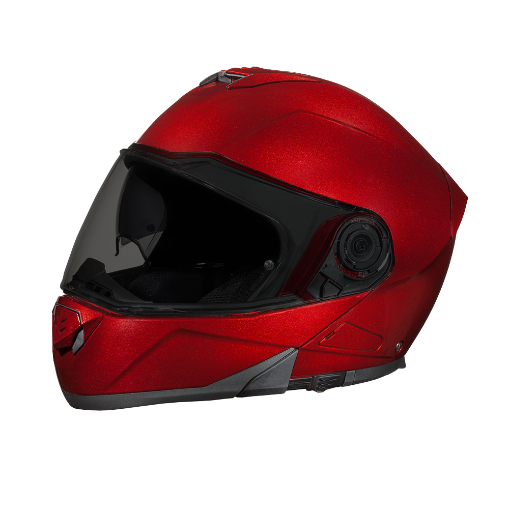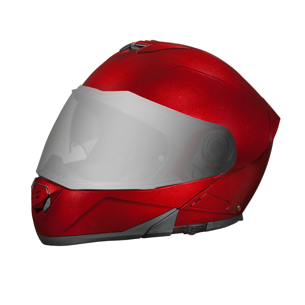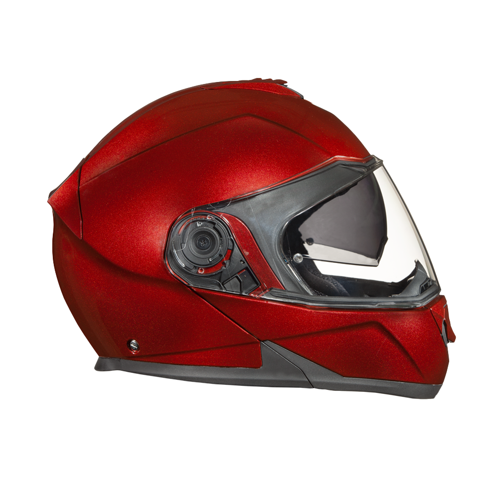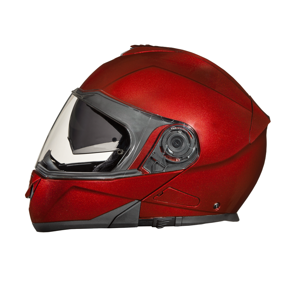 Our D.O.T. Daytona Glide Modular Helmet, With Inner Anti-Scratch Retractable Smoke Shield, In A Custom Black Cherry Metallic, Meets And Exceeds D.O.T. FMVSS 218 Standards. With 2 Different Shell Sizes, You're Sure To Get That Proportionate Fit!! This Modular Helmet Comes In A Clear Lacquer Finish. Also Available In Custom Colors: Gun Metal Grey Metallic, Silver Metallic And Fluorescent Yellow. Basic Colors; Soft Touch Dull Black, Hi-Gloss Black And Hi-Gloss White. Specialty Items: Graphics. Features A Dual Shield System; Outer Anti-Scratch Clear Shield With Pinlock 30 Lens (Anti-Fog) And Inner Anti-Scratch Retractable Smoke Shield. Also Has A Quick Release Lock Retention System; One Finger Release Lever For Easy Detachment, Adjustable Chin And Forehead Ventilation And A Removable, Hand Washable Interior (Moisture Wicking Fabric). Bluetooth Compatible. Free Head Wrap And Draw String Bag Included. Sizes Range From XS-4XL.