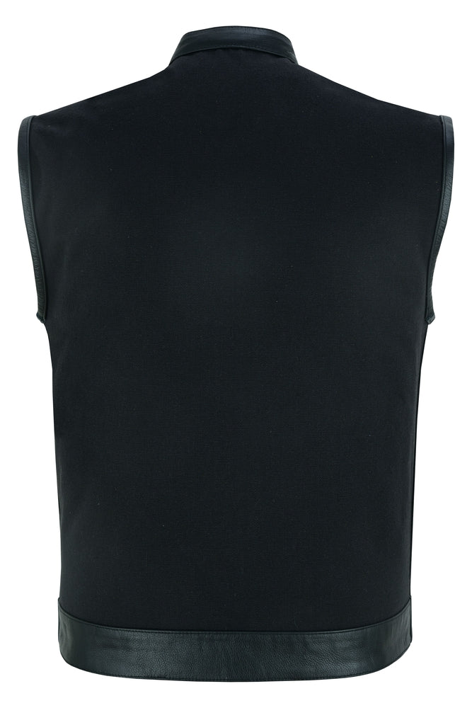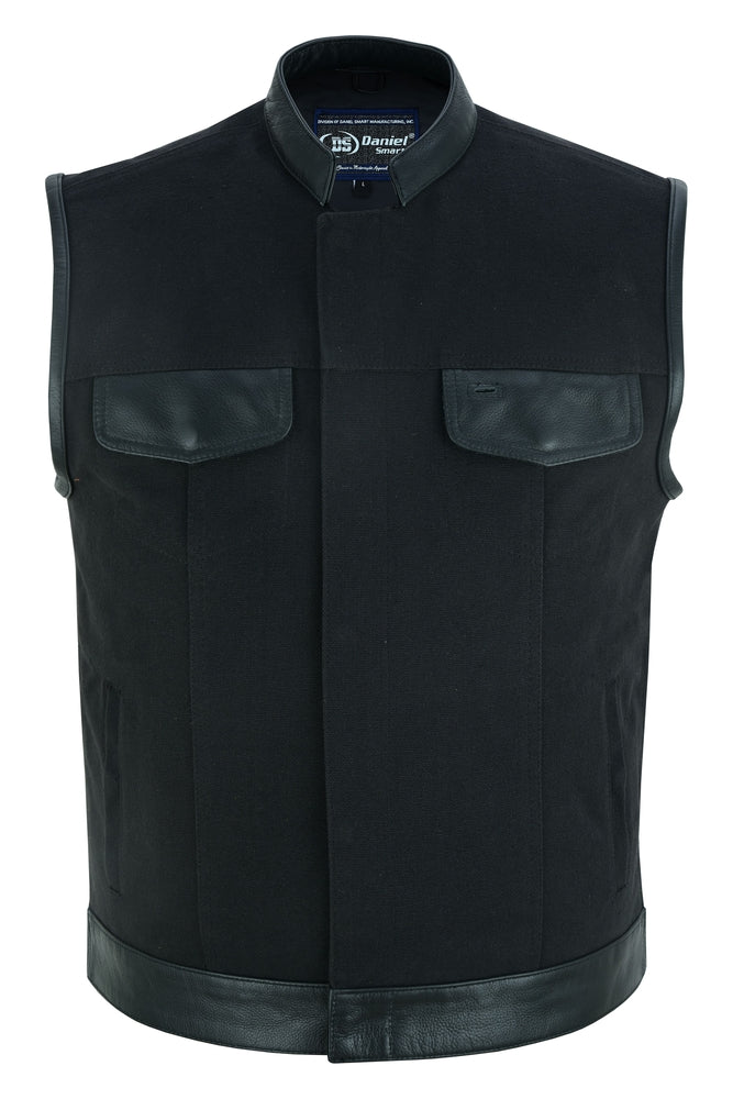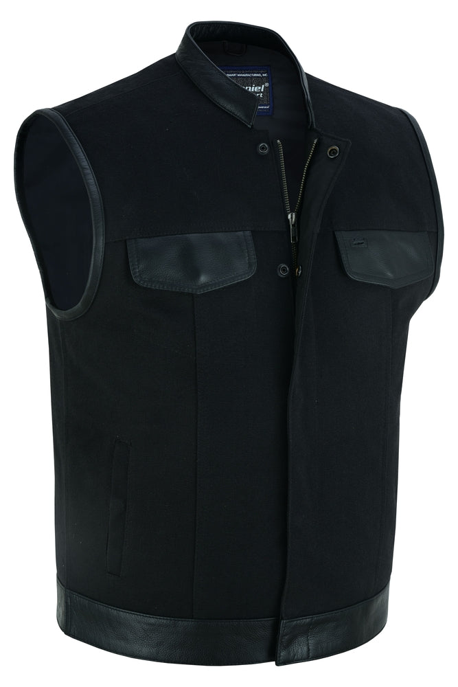 Canvas material w/leather trimming.