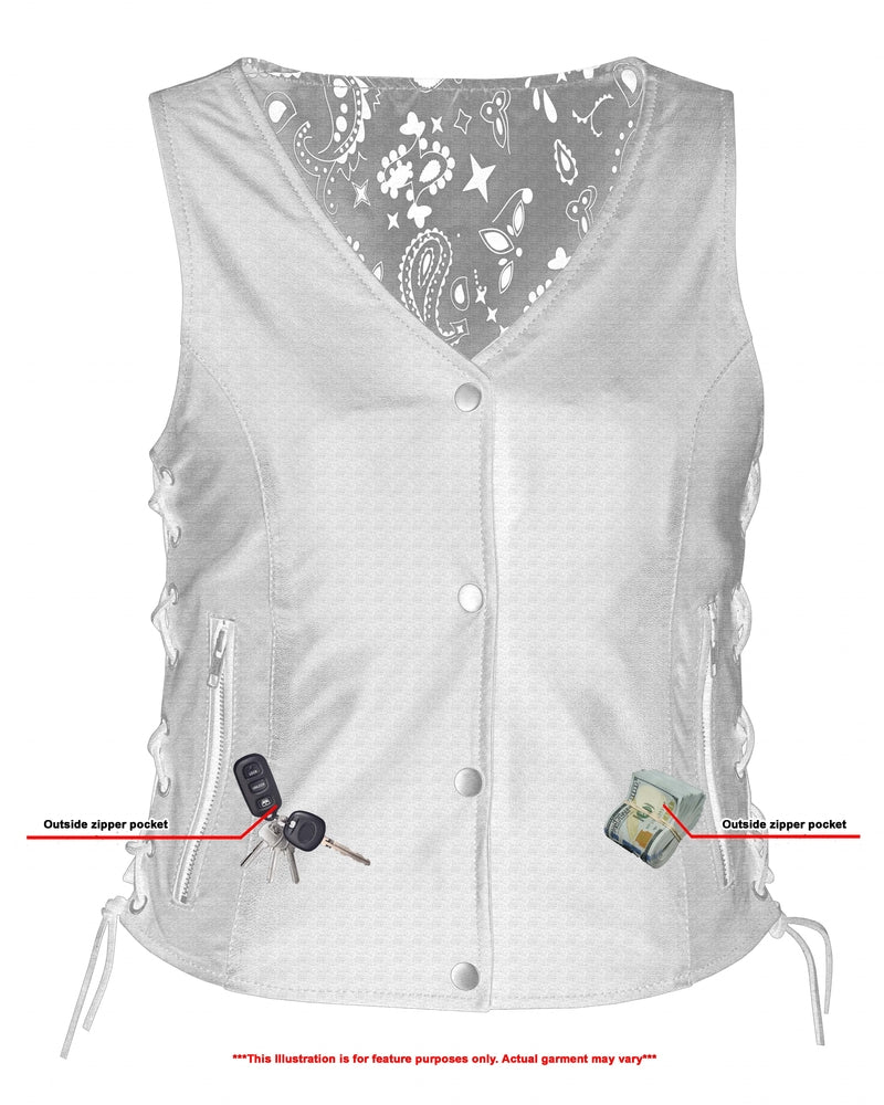 2 inside concealed gun pockets made of special heavy-duty textile with built-in holsters and snap closure.