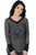 Comfortable and edgy, waffle knit, long sleeve thermal with black contrasting binding and cuffs, silver rhinestones on the front yoke and graphic and features a black wings and motorcycle graphic.